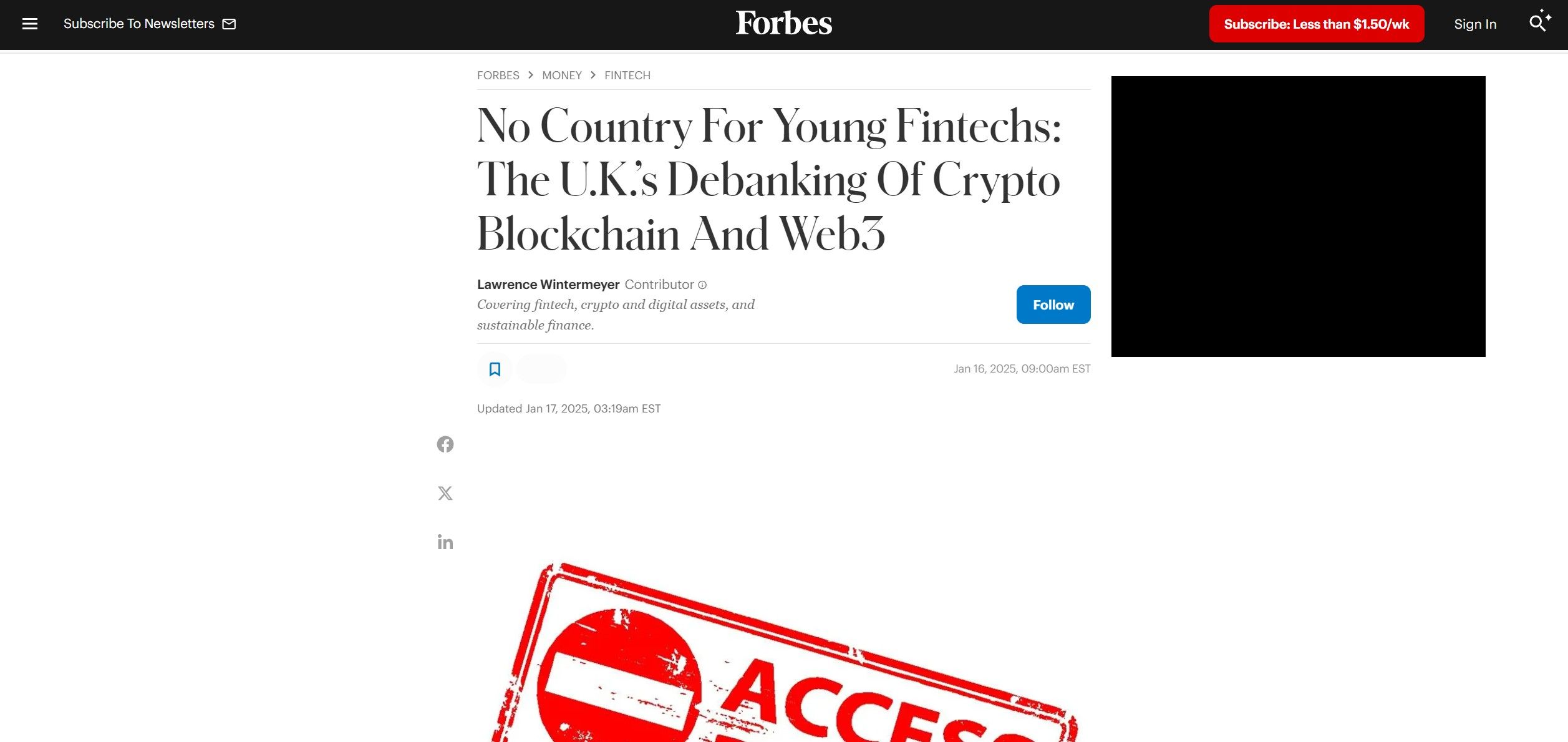 No Country For Young Fintechs: The U.K.’s Debanking Of Crypto Blockchain And Web3