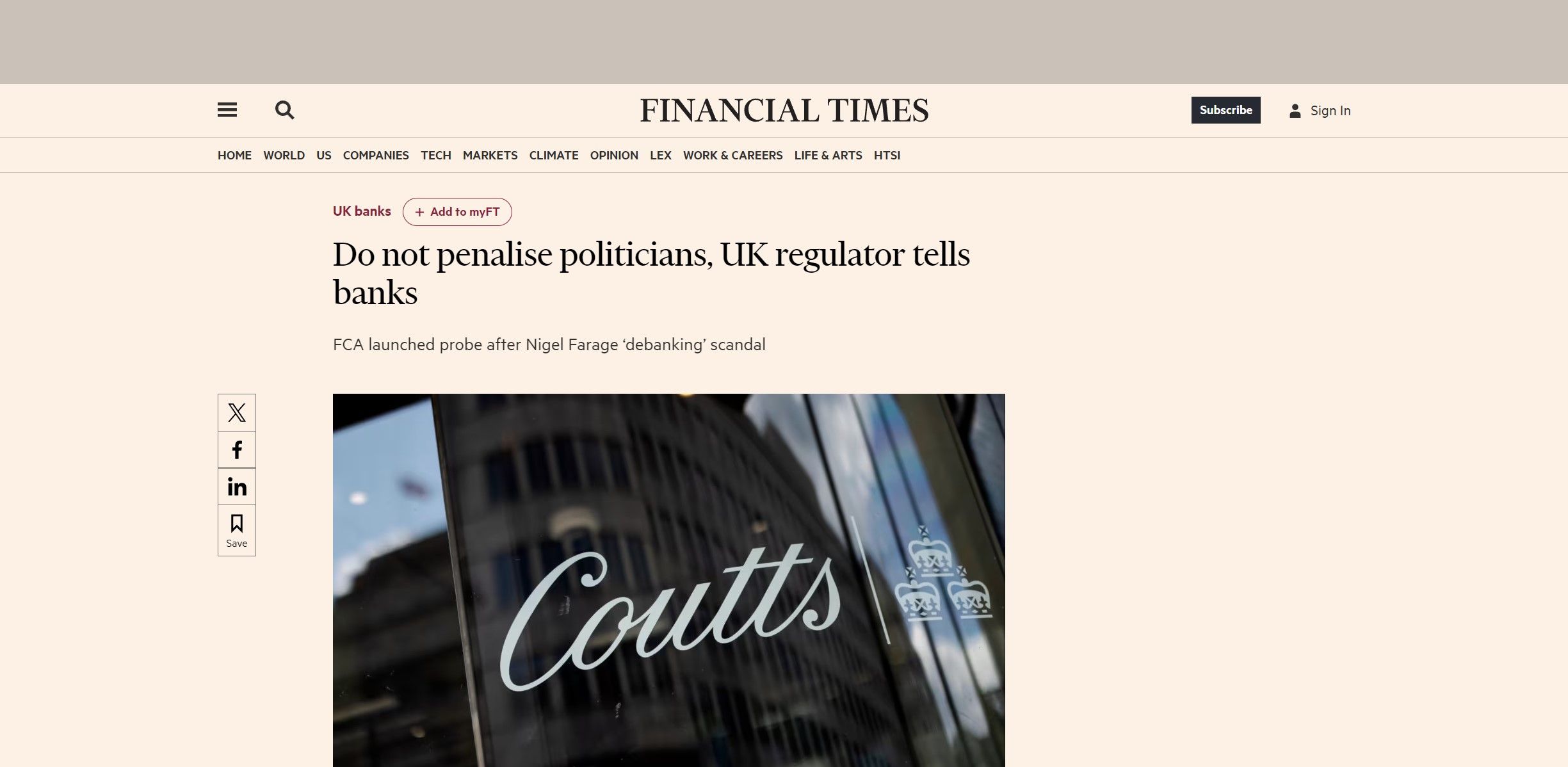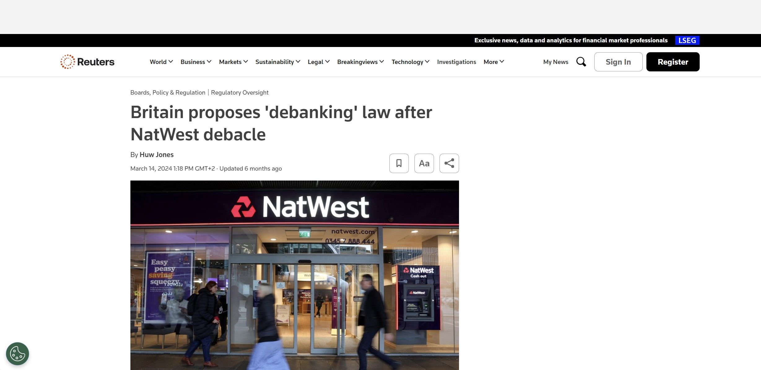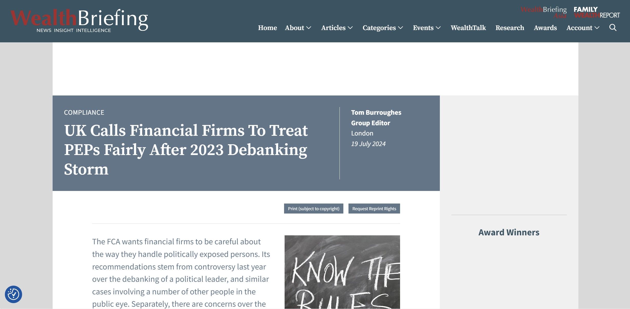 UK Calls Financial Firms To Treat PEPs Fairly After 2023 Debanking Storm