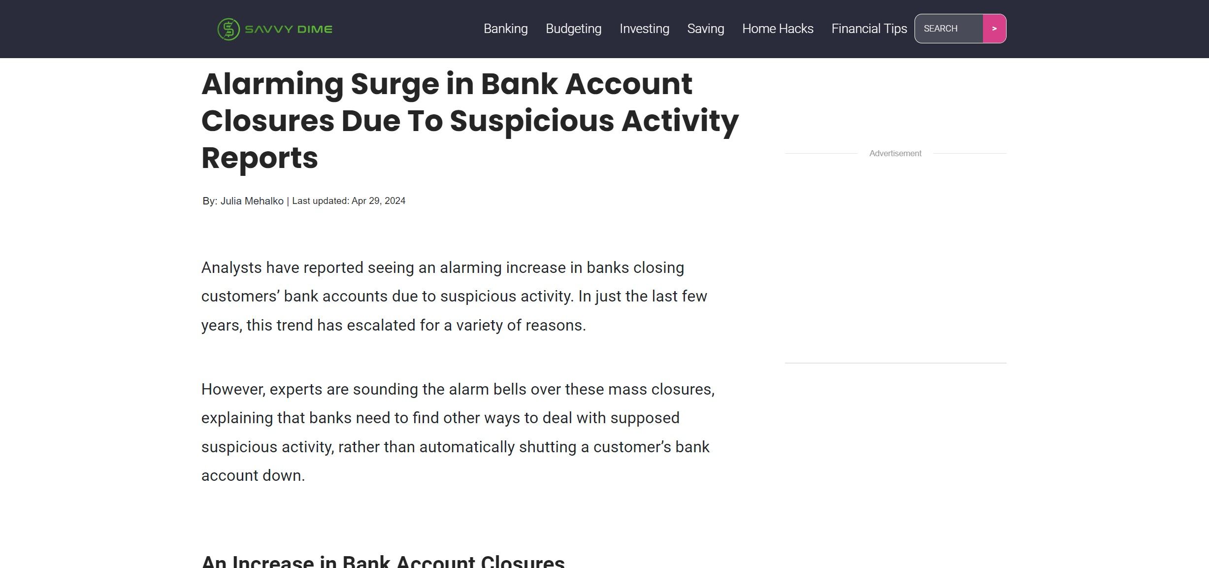 Alarming Surge in Bank Account Closures Due To Suspicious Activity Reports