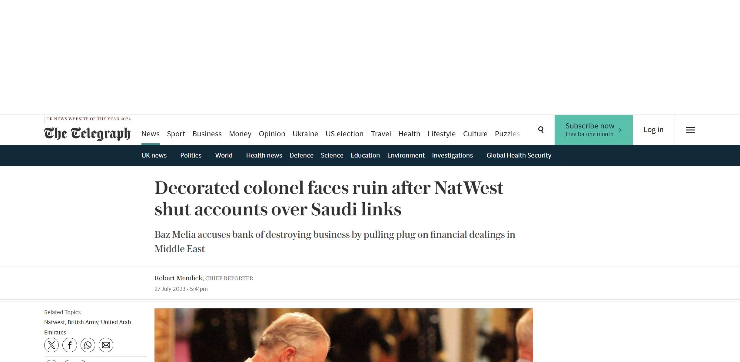 Decorated colonel faces ruin after NatWest shut accounts over Saudi links