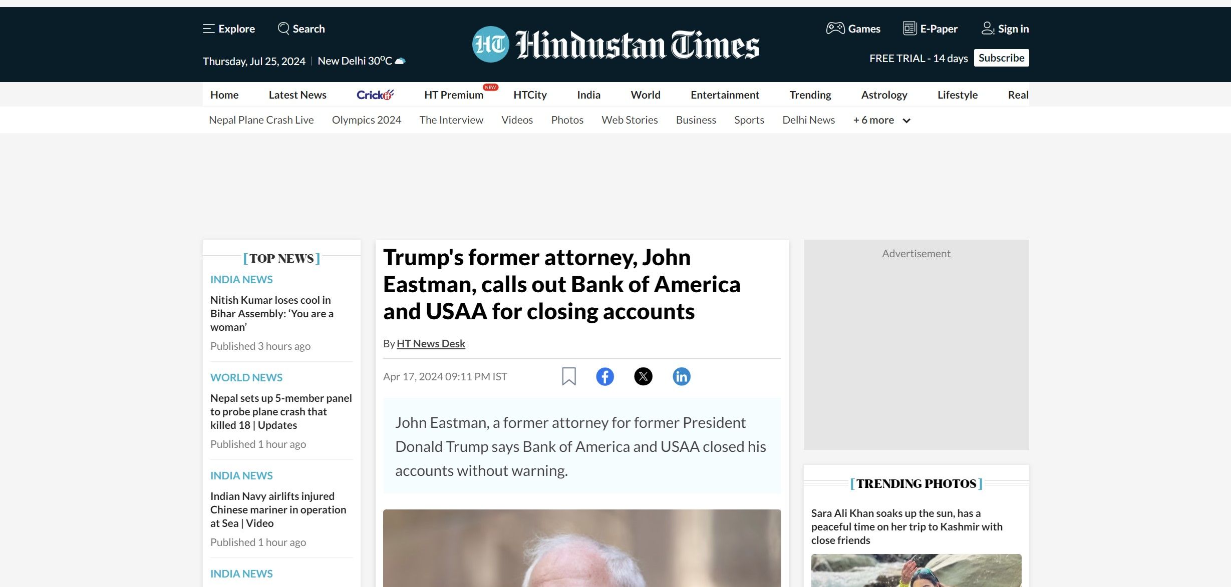 Trump's former attorney, John Eastman, calls out Bank of America and USAA for closing accounts