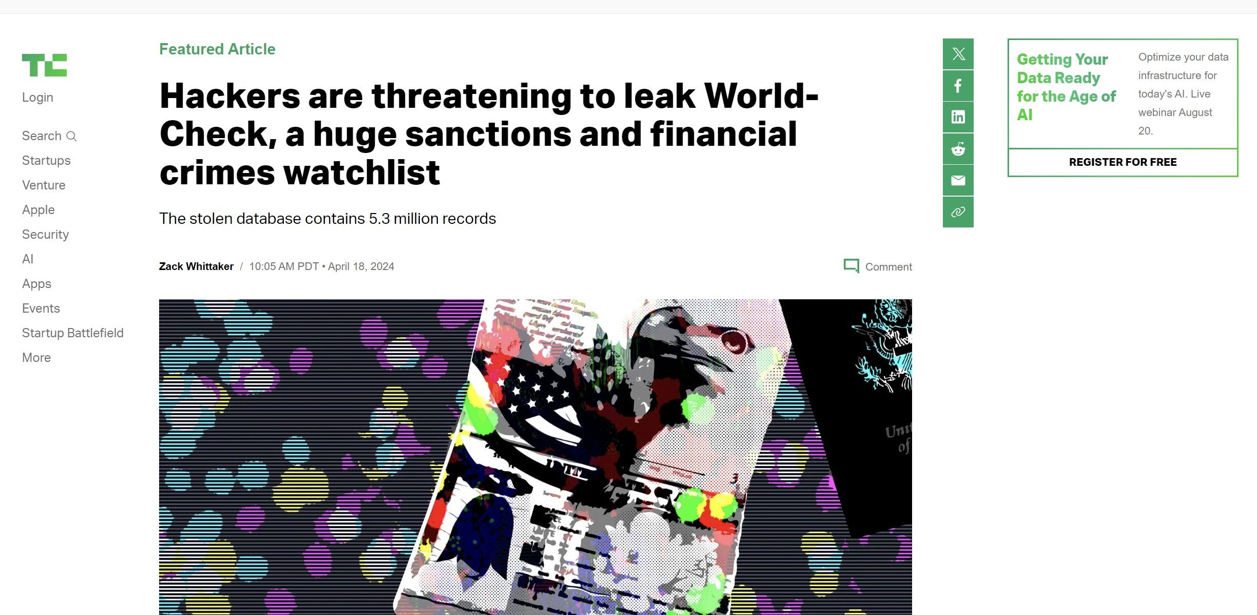 Hackers are threatening to leak World-Check, a huge sanctions and financial crimes watchlist