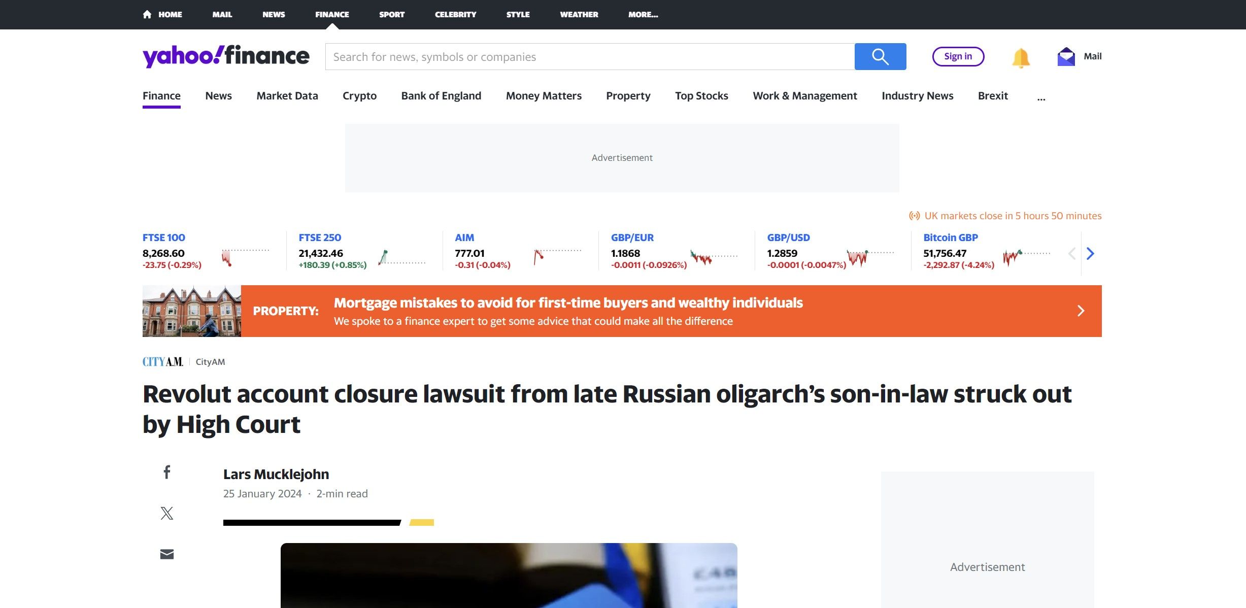 Revolut account closure lawsuit from late Russian oligarch’s son-in-law struck out by High Court