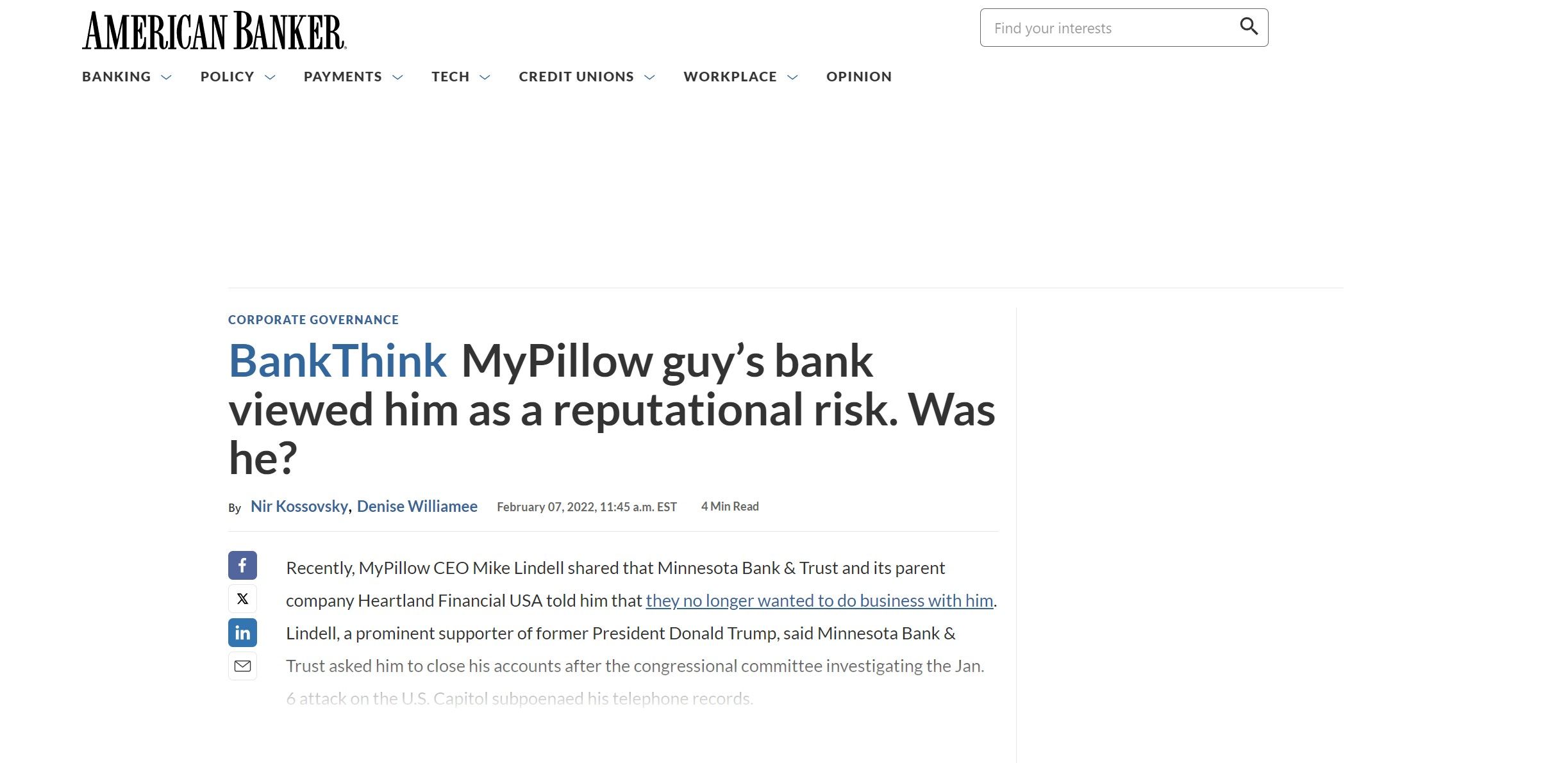 BankThink MyPillow guy’s bank viewed him as a reputational risk. Was he?
